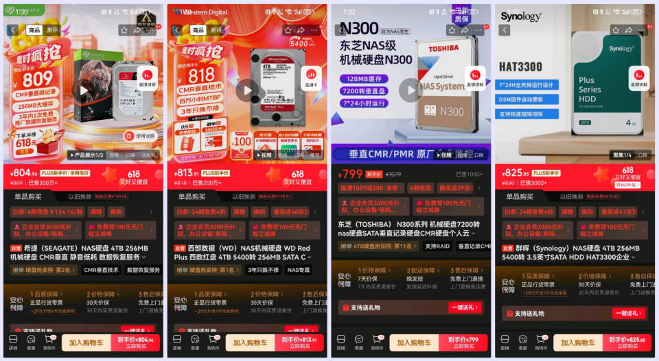 🔺价格上我对比下目前热门同容量的其它品牌NAS专用盘,可以看到群晖硬盘的价格和它们差价并不大,一块硬盘最多也就贵了20块钱左右而已。但是对于群晖NAS来说,却能得到官方一站式的技术支持,要知道这额外的服务可是远远超过20块钱,特别是对于企业来说,也是相当的安全和省心的。
