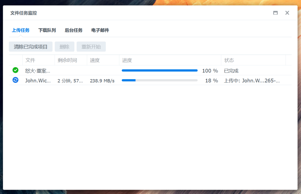 🔺实机演示上传一个20GB的电影文件,可以看到速度基本上再230MB/s左右,也算是2.5GbE网口的正常速度。所以说新设备的2.5G网口