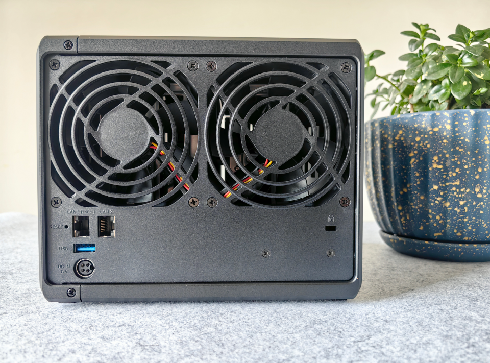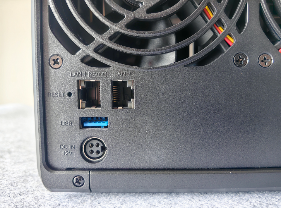 🔺背面上部分是它的两个92mm散热风扇,下半部分是它的I/O接口,包括两个网口、一个USB 3.2 Gen 1接口、电源输入口以及一个防盗的Kensington安全锁孔。