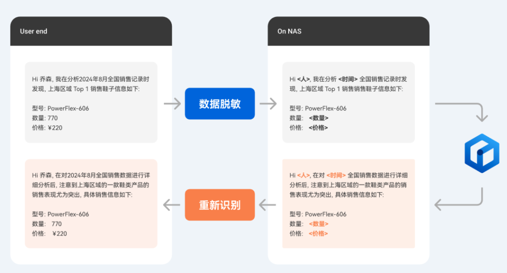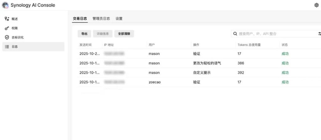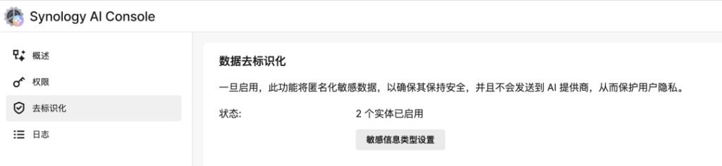 敏感数据脱敏防护:Synology AI Console 支持去识别化功能,通过自定义规则对个人信息进行脱敏,以满足合规需求。